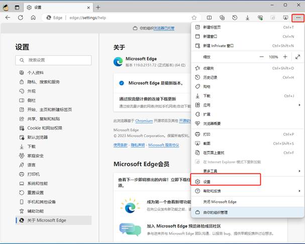打开Edge设置