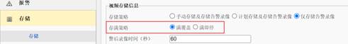 检查摄像机存满策略是“满覆盖”还是“满即停”,默认配置“满覆盖”(当分配给本地录像的总容量已满时,最新录像会覆盖原有的录像文件),若选择“满即停”,则分配给本地录像的总容量存满时,会停止录像。