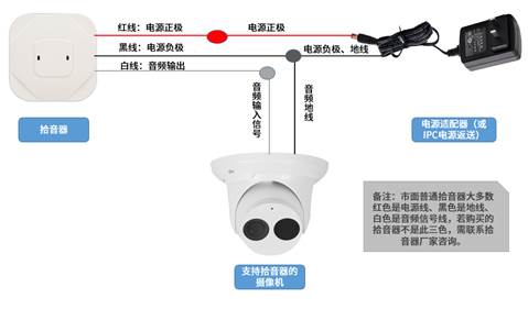 2、 拾音器的音频信号线接摄像机音频输入信号线