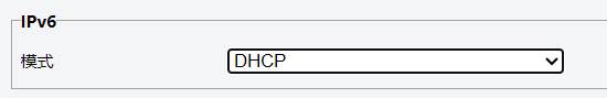 IPv6 模式默认 DHCP,选择<DHCP模式,设备可自动地从 DHCP 服务器获得IP 地址。