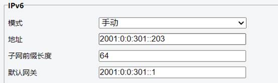 (2) 输入设备的 IPv6 地址、子网前缀长度和默认网关,并确保设备的 IP 地址全网唯一。