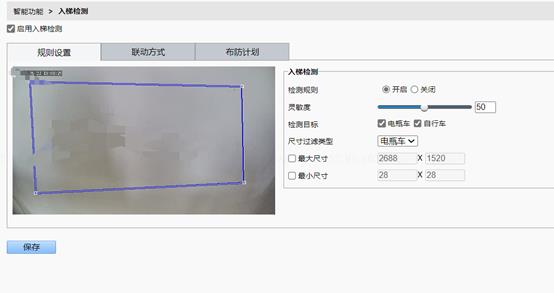4、 设置检测规则,检测目标选择电瓶车或自行车。尺寸过滤类型可选电瓶车或自行车