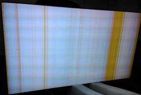 | 表现为灰阶异常(屏幕的亮度、对比度值为默认的中间值时),图像的色彩过度不正常。系统初始化无效。也可能表现为同一场景下的图像偏亮或偏暗,为液晶面板上的信号接口板故障。 | 错位的条带,多见于1920x1080分辨率下。且初始化操作无效,为主板故障 |