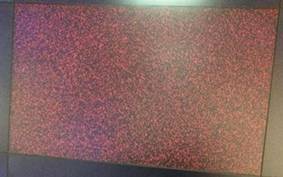 2、屏线连接异常(许多红色或绿色斑点,更换主板时没有插好点屏线也会造成此类故障)。