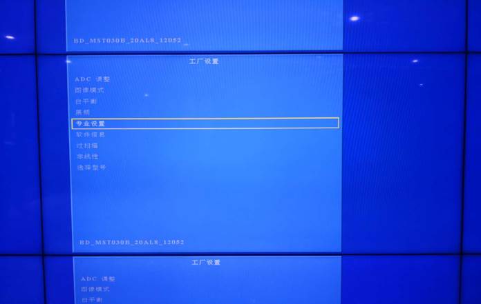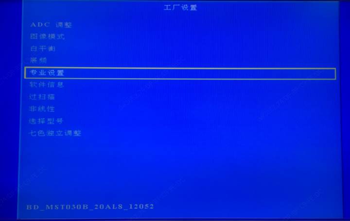 工厂设置菜单界面使用遥控器上下方向键选择专业设置,确认后可进入专业设置,可修改本机各项功能参数。