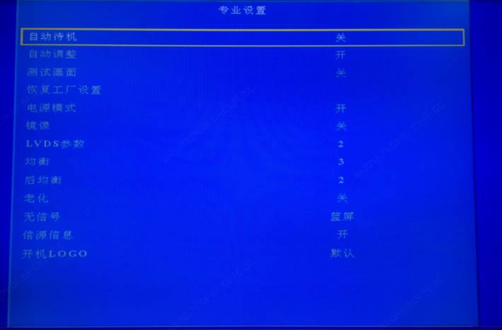 无信号---》无信号模式下可选择蓝屏、黑屏、无背光;