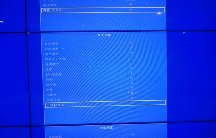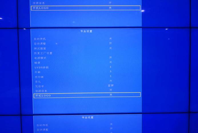 遥控器按下信号源键、再按1920就会进入工厂设置,依次选择专业设置 -> 开机LOGO,默认配置为开机显示宇视LOGO, 如无需在开机启动时显示LOGO,遥控器左右键就可以调节到关闭状态。