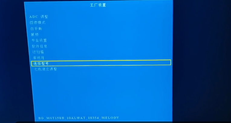 遥控器先按信号源再按数字键 1920后进入工厂设置界面。