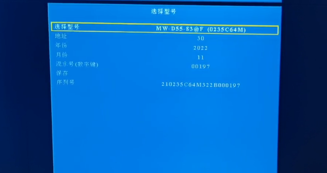 2. 使用遥控器上下方向键进入选择型号,可查看当前的型号;
