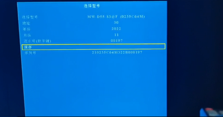 4.最后使用遥控器上下方向键选到保存,再按确认键,即可完成型号修改。