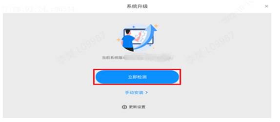 2)打开桌面,左滑找到系统升级APP并打开,点击页面中的“立即检测”按钮,此时页面会显示当前系统版本,请做好记录,以便后续确认是否升级成功;
