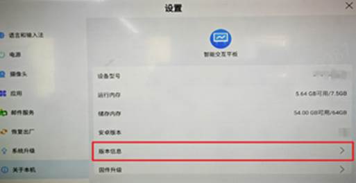 5)设备重启完成后,打开“系统设置”--“关于本机”--“版本信息”标签,查看版本是否升级成功。