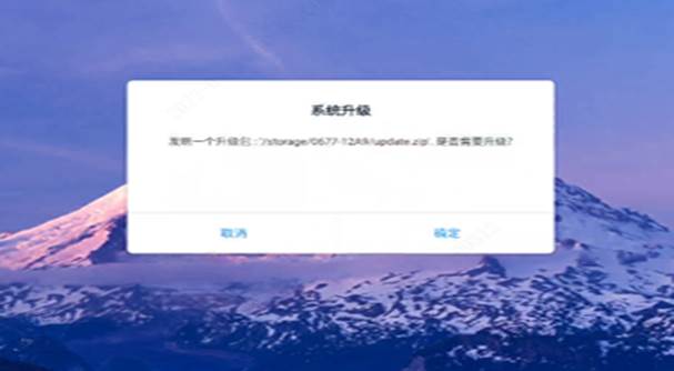 2)将U盘插入到设备侧面USB口上,主页面弹出“发现update.zip”弹窗,点确定升级;