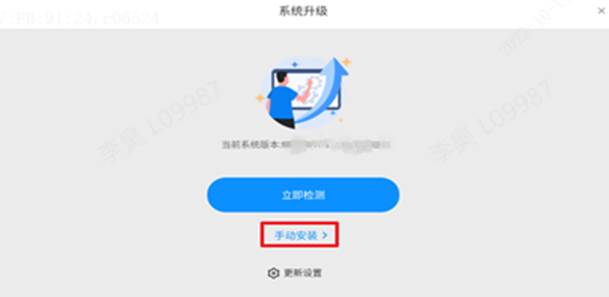 3)若U盘接入后未弹窗,在桌面左滑找到系统升级APP并打开,点击页面中的“手动安装”按钮,选择路径下的升级包(XX.zip)文件,进行升级;