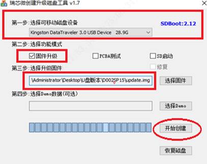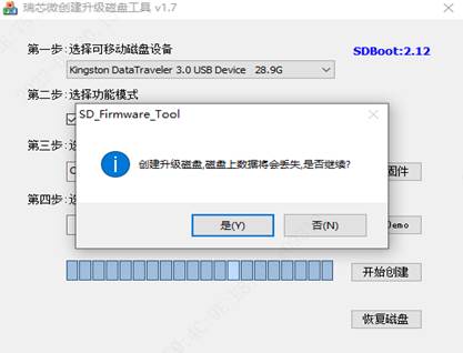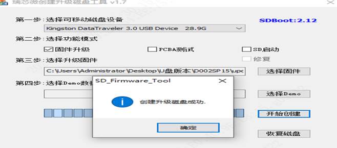 注意:升级卡使用完毕后,请使用“SD_Firmware_Tool”工具中的“恢复磁盘”功能将U盘恢复成初始状态,以免影响后续使用