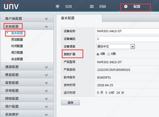 【系统配置】--->【基本配置】-->【路数扩展】