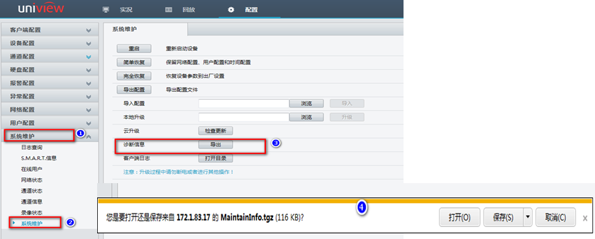 系统维护中导出诊断信息