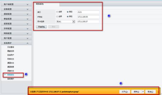 目前NVR支持网页上一键抓包,可以指定相应端口和IP地址,选择网卡,点击开始抓包然后导出抓包信息。