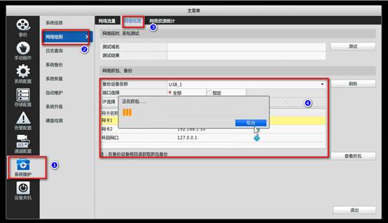 目前NVR支持在人机上一键抓包,可以指定相应端口和IP地址,选择网卡,点击开始抓包。