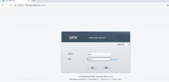 网页输入录像机IP地址、输入用户名密码登录设备。