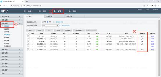 点击配置、左侧列表选择通道配置、进入通道管理界面。