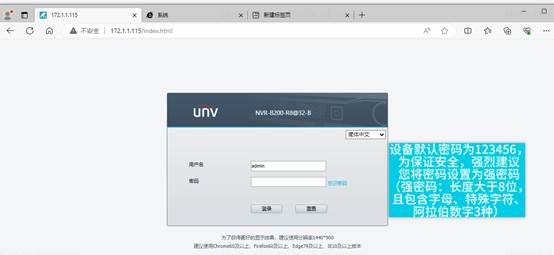 浏览器地址栏输入录像机IP地址访问,填写用户名密码登陆设备界面。
