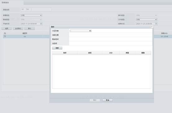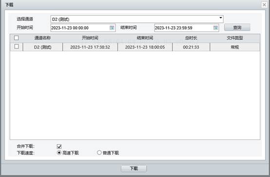 (2)在弹出的下载界面,配置搜索条件,选择通道、时间进行查询。
