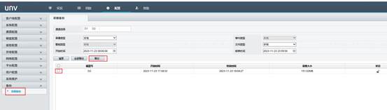 2.【配置】-【备份】-【录像备份】,选择对应通道、录像类型、时间等条件进行搜索。