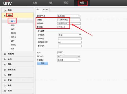 摄像机地址修改方法:通过局域网访问摄像机,点击【配置】-【网络】-【网口】-获取IP方式修改为静态,IP地址可设置为和录像机地址同一网段,子网掩码和网关设置一致。