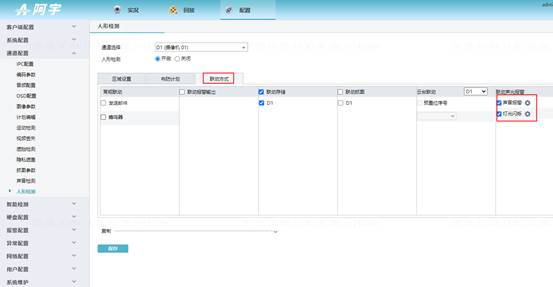 NVR设置人形检测触发后,联动相机警戒音和灯光告警。