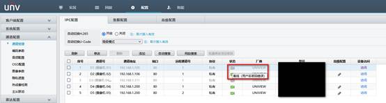 查看相机通道状态,诺显示用户名密码错误,需要排查一下添加相机时填写的用户名和密码是否正确