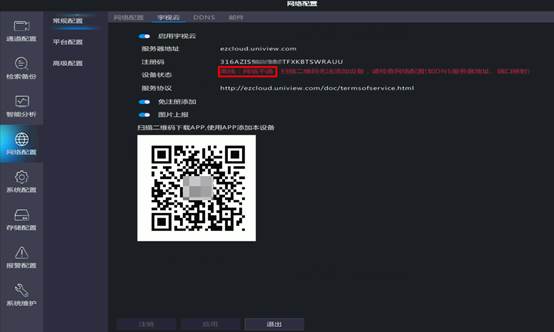 录像机宇视云界面设备状态显示离线