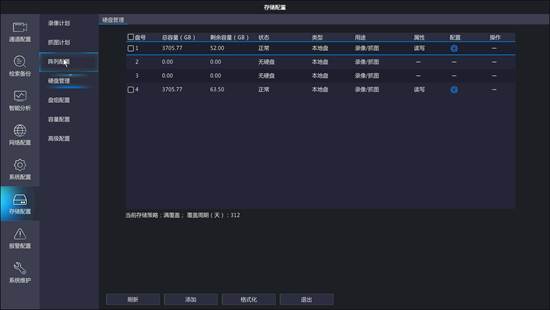 主菜单-存储配置-硬盘管理,查看硬盘数量: