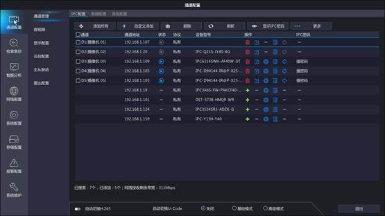 主菜单-通道配置-通道管理,查看设备通道数量: