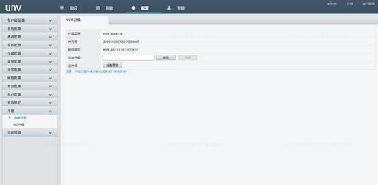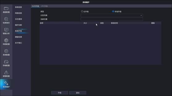 人机界面版本升级:主菜单-系统维护-系统升级-NVR升级