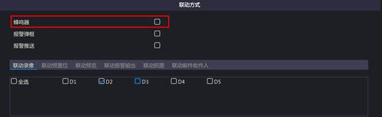 3. 若告警事件为智能分析事件,检查是否配置报警联动蜂鸣器报警