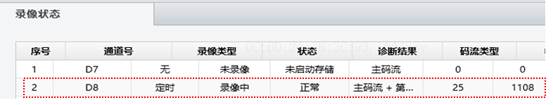 录像状态查看,显示器界面鼠标右键主菜单—>系统维护—>系统信息—>录像状态(网页界面路径:配置—系统维护—录像状态),一般有四种显示。