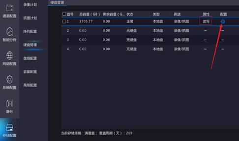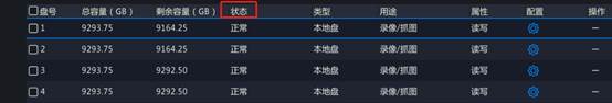 硬盘状态异常:选择[主菜单>存储配置>硬盘管理],进入[硬盘管理]界面。查看硬盘状态。