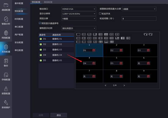 【主菜单--系统配置--预览配置】绑定通道