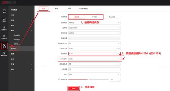 确认IPC和NVR的编码格式是否匹配,部分第三方厂家的超级265无法与NVR兼容,需要进入IPC界面将编码格式改成H.264或者普通H.265。