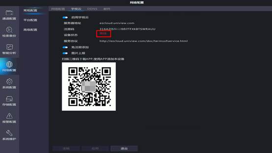 录像机宇视云界面设备状态显示离线