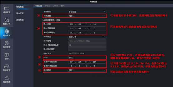 (2) 路由器或现场网络是否有限制,检查路由器的安全配置及防火墙,是否禁用录像机上网,或者现场设备联网需要联系网络管理员申请加入,统一分配地址,可交叉测试设备判断。