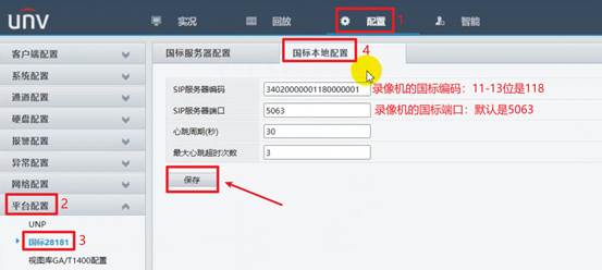 单机“配置—平台配置—国标28181—国标本地配置”,设置录像机的国标编码和端口。