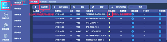,可一键添加对应通道IPC