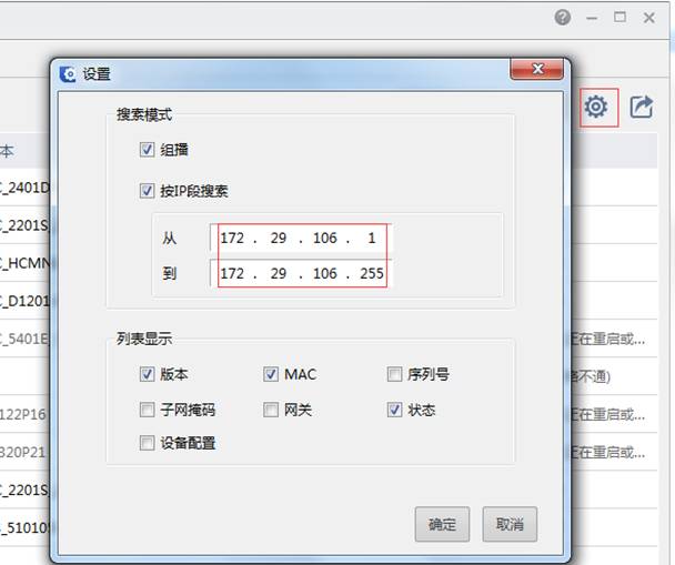 点击设置,填写设备IPC所在网段,点击确定