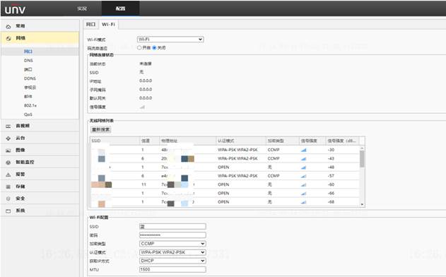 ③选择wifi后填写Wi-Fi配置,具体参数如下表