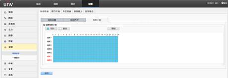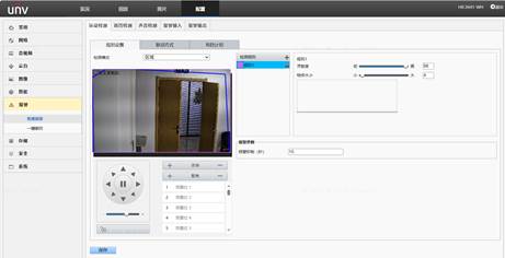 点击配置-报警-运动检测,配置规则设置,检测模式选择区域,画检测规则,调整规则灵敏度,启用布防计划,点击保存