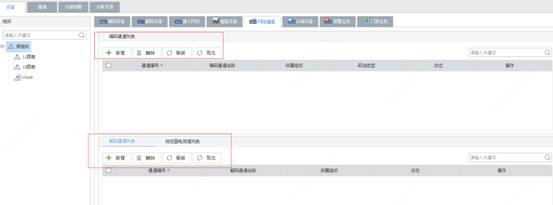 2、一体机WEB界面设备管理--网络键盘界面添加编码通道列表和解码器列表。