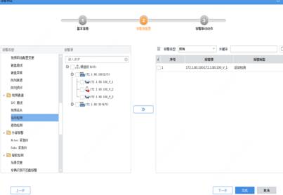 (1) 报警类型选择触发的报警类型(2) 报警类型选择完毕后,选择报警相机,