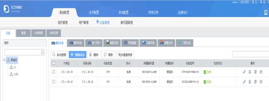 点击【基础配置】—【设备管理】—编码设备,添加IPC或NVR设备
